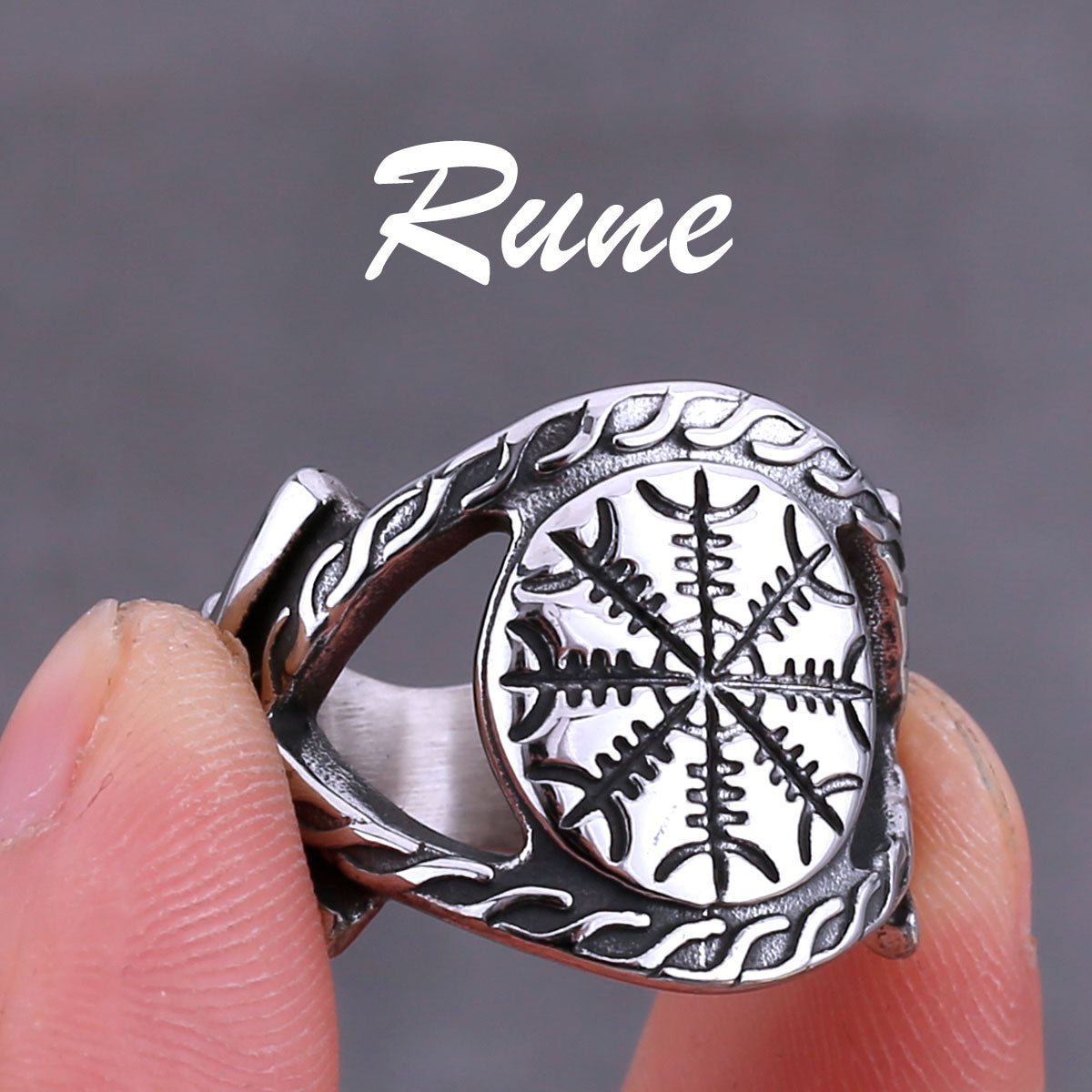 Men's Nordic Viking Stainless Steel Norwegian Rune Rings, a bold and symbolic accessory inspired by Viking heritage. Crafted with precision and attention to detail, these rings showcase intricate Viking designs and incorporate ancient Norse runes, making them a captivating choice for those who embrace Viking culture.