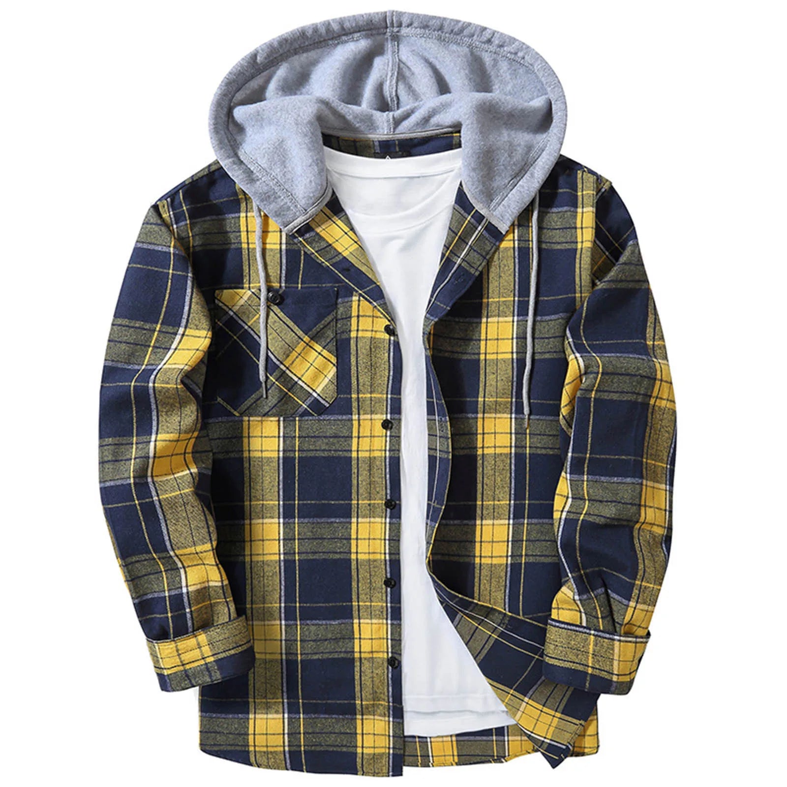 Stay cozy and stylish with our Men’s Plaid Print Hooded Shirt, the perfect blend of casual comfort and street-ready style. Designed in a loose, relaxed fit, this long-sleeve flannel shirt combines classic plaid with a hooded design, making it ideal for layering through spring and autumn. Wear it as a lightweight jacket or a stand-alone shirt for a laid-back look that’s effortlessly cool. Whether you’re out and about or lounging, this shirt brings timeless style to any casual outfit.